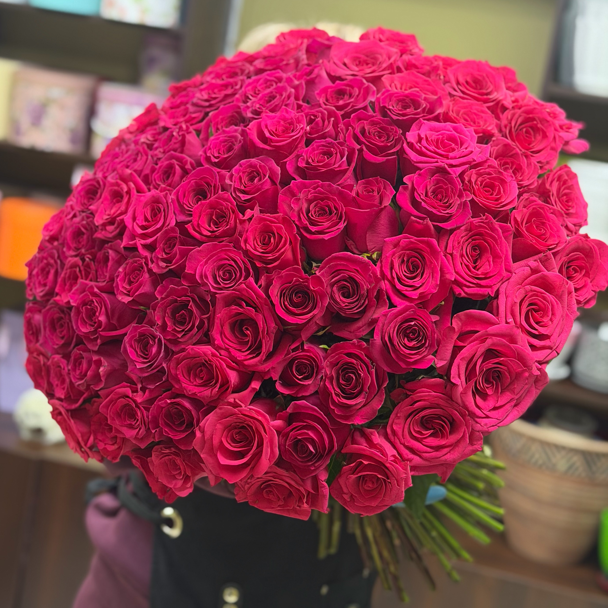 101 ярко-розовая эквадорская роза премиум сорта Gotcha, Vi Pink.