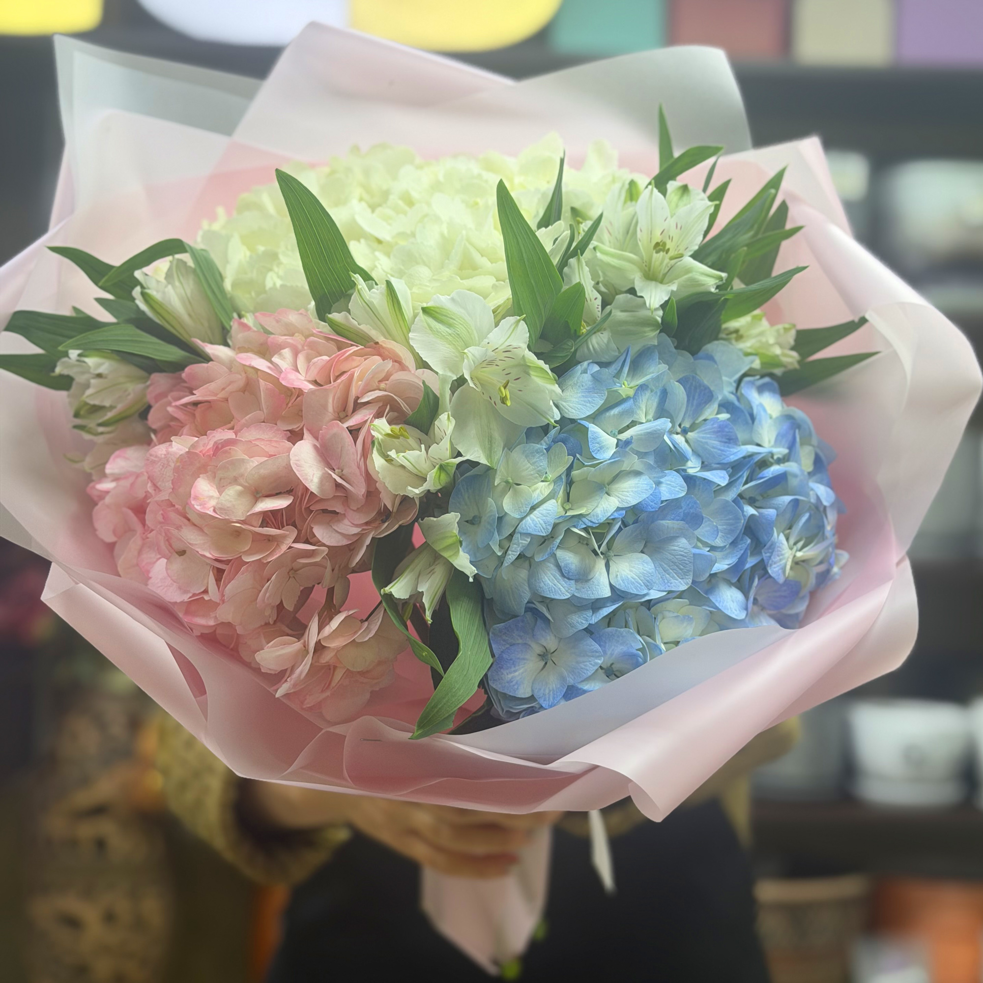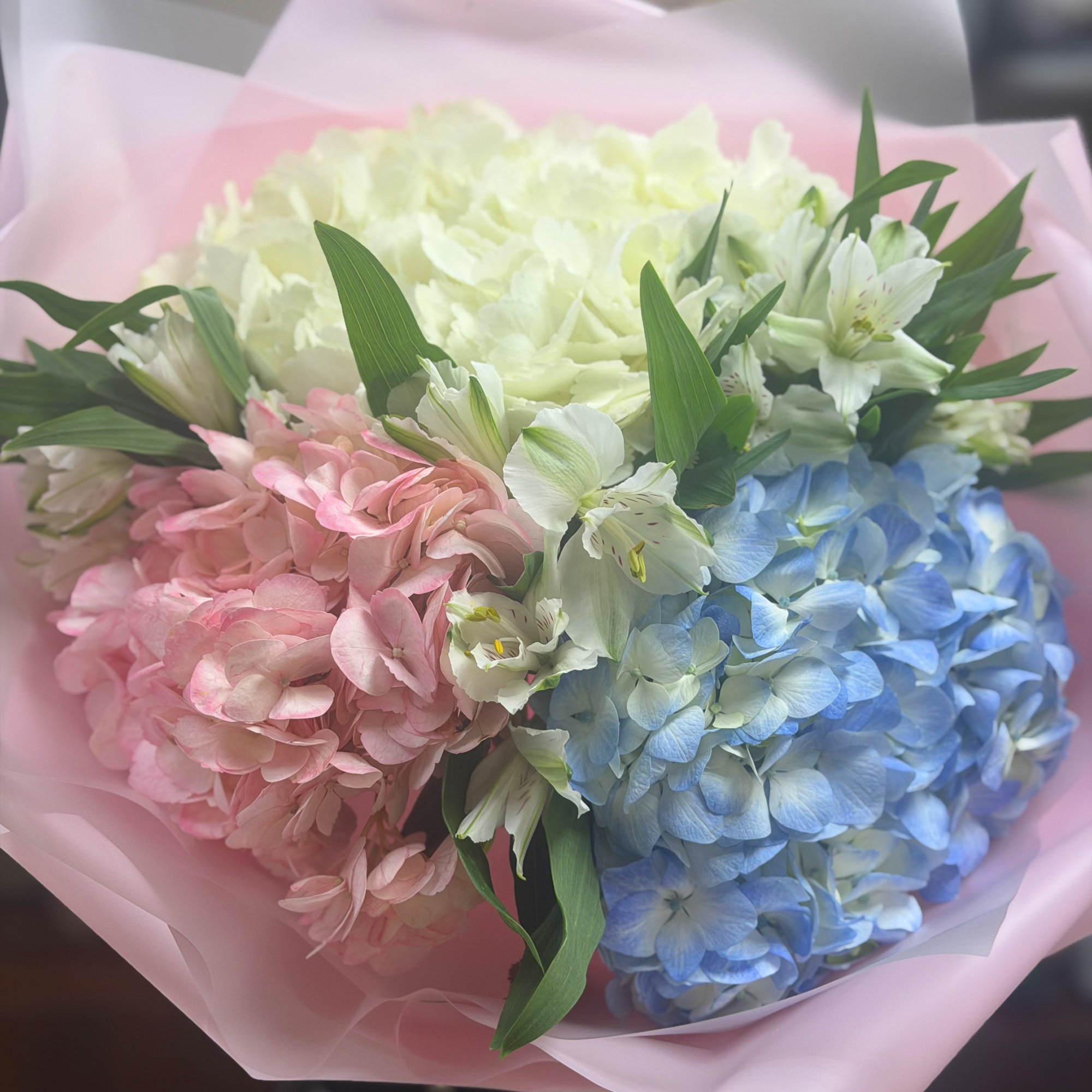 Букет из белых альстромерий и гортензий.