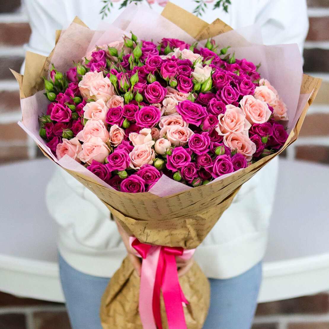 БУКЕТ ИЗ 35 КУСТОВЫХ РОЗ