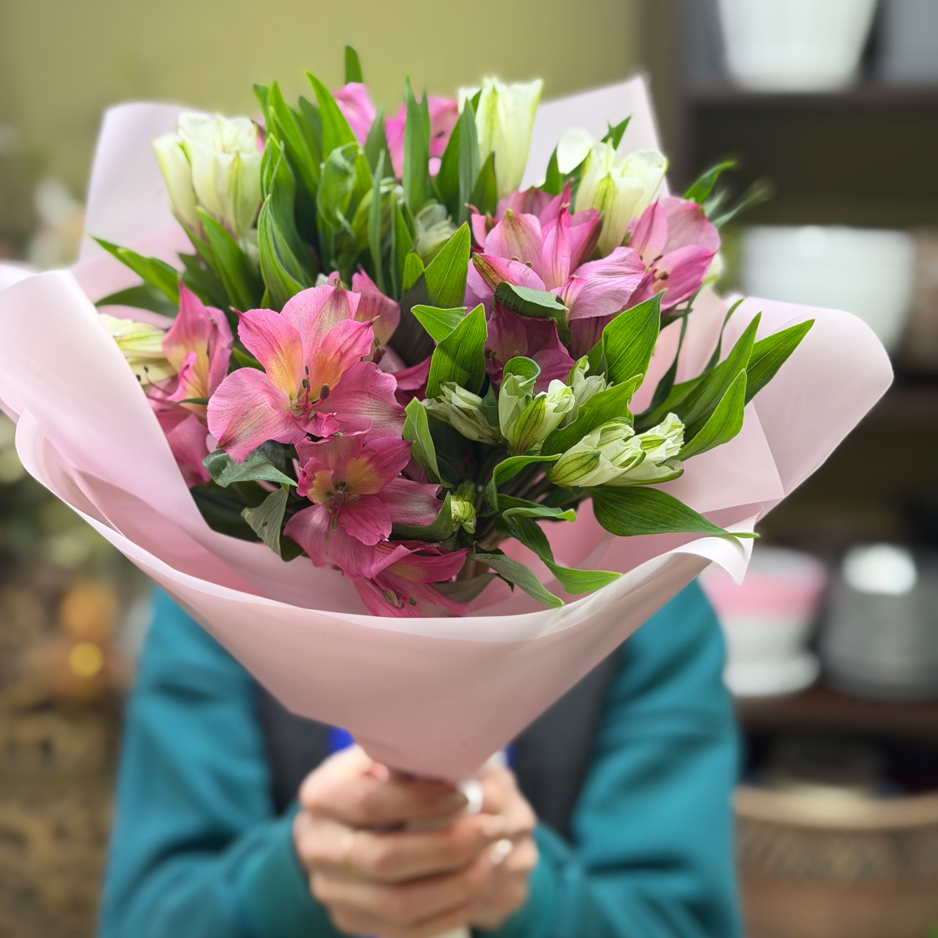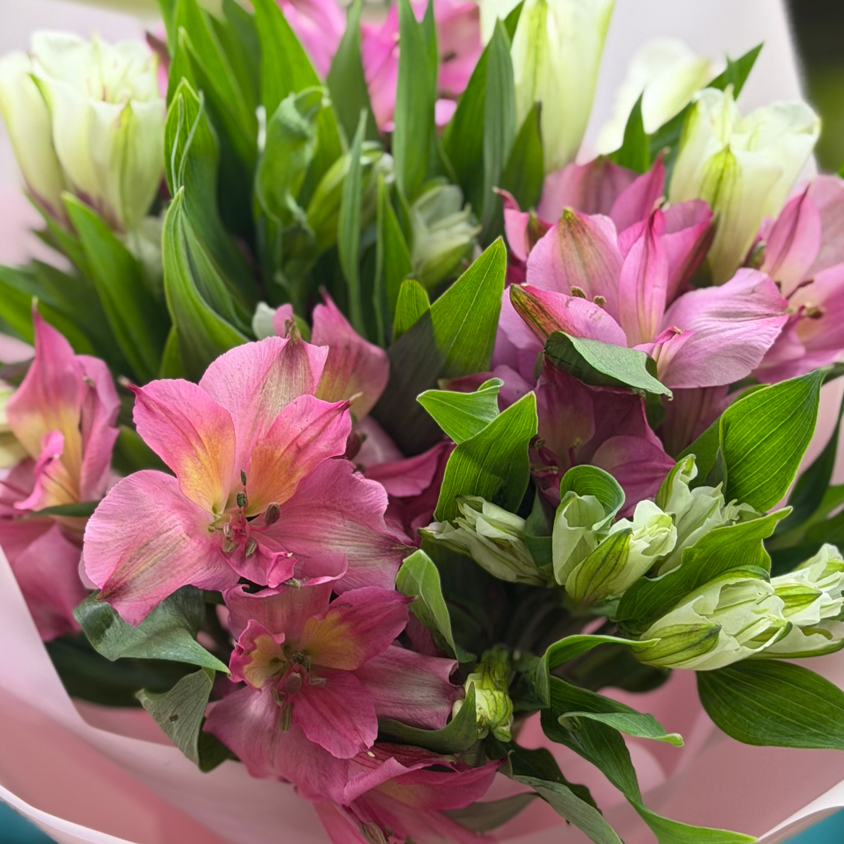 Альстромерия белая и розовая Эквадор — 7 шт. (цвет может отличаться)