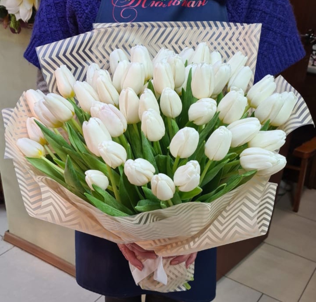 Тюльпаны белые — 51 шт.