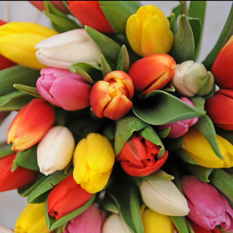 Тюльпаны разноцветные — 51 шт. (сорта тюльпанов могут немного отличаться от фото)